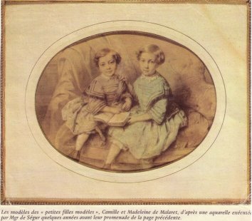 A partir de 1870, on n'impose plus aux fillettes, comme à leurs mères, le port de la tournure. Le corsage est encore à décolleté carré . Il a souvent une guimpe en mousseline blanche avec un tout peti col droit. Le paletot est court, reste tronconique et vague. La forme du chapeau change encore.