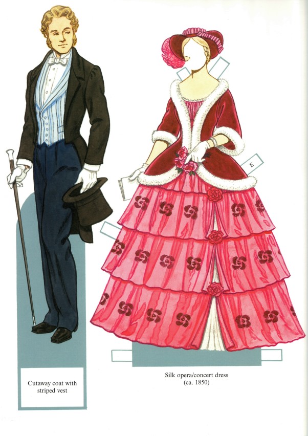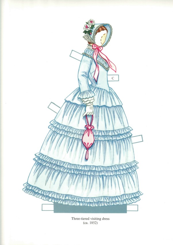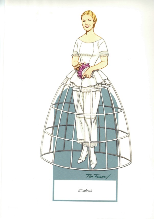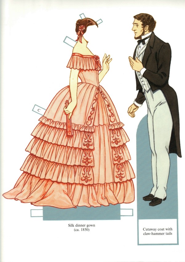 Il semblerait que cette mode de la poupée de papier soit remise au goût du jour puisque Tom Tierney, entre autre, afait un petit livre : Hoop Skirts and crinoline, PAPER DOLLS dont je vais vous faire partager les illustrations.