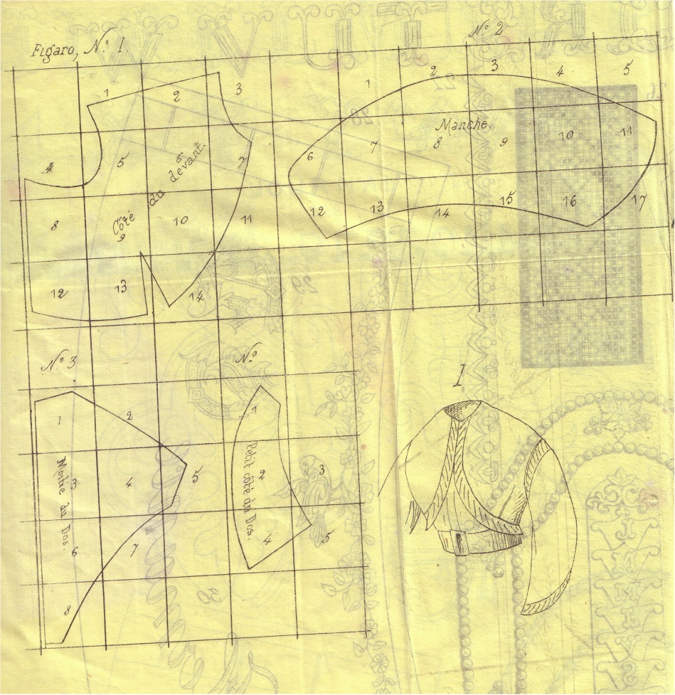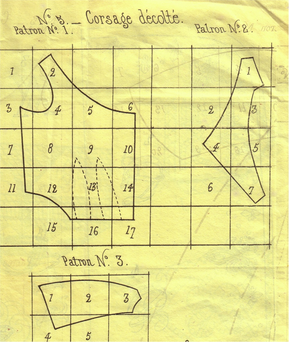 | Corsage décolleté année 1866 | Veste Figaro année 1866 | Corsage décolleté année 1866 |